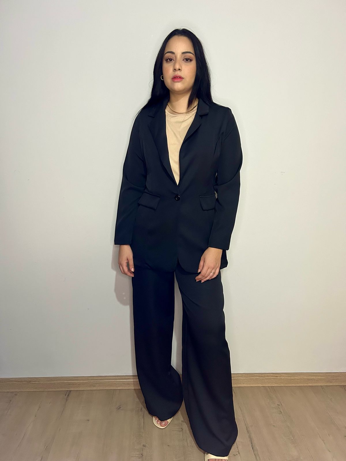 Nosso conjunto Essenze traz a combinação perfeita entre sofisticação e versatilidade: blazer estruturado e calça de alfaiataria em um preto clássico que nunca sai de moda.